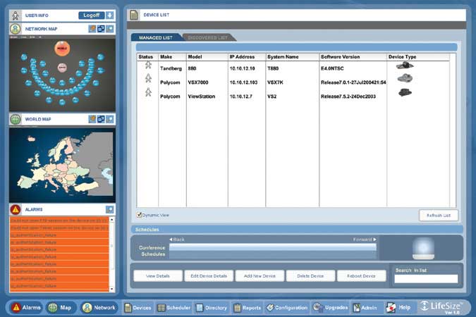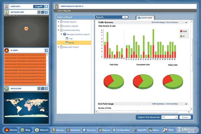 LifeSize Control™ is advanced management software for all your video communications devices. The application includes performance monitoring, multi-point & point-to-point conference scheduling, report generation, and a host of other features useful in optimizing your communications resources in a single or multi-manufacturer environment. Export this information in useful formats, such as PDF & Excel, for your management team to analyze how your network is used. Microsoft.Net framework ensures maximum security and scalability while providing simple accessibility for all LifeSize Control users.