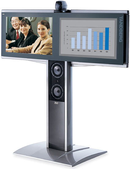 The Tandberg 7000 includes 2 x 30" widescreen LCD monitors, wireless remote control, Tracker, W.A.V.E. II camera, microphone, Natural Audio ModuleTM II, integrated cabling and stand