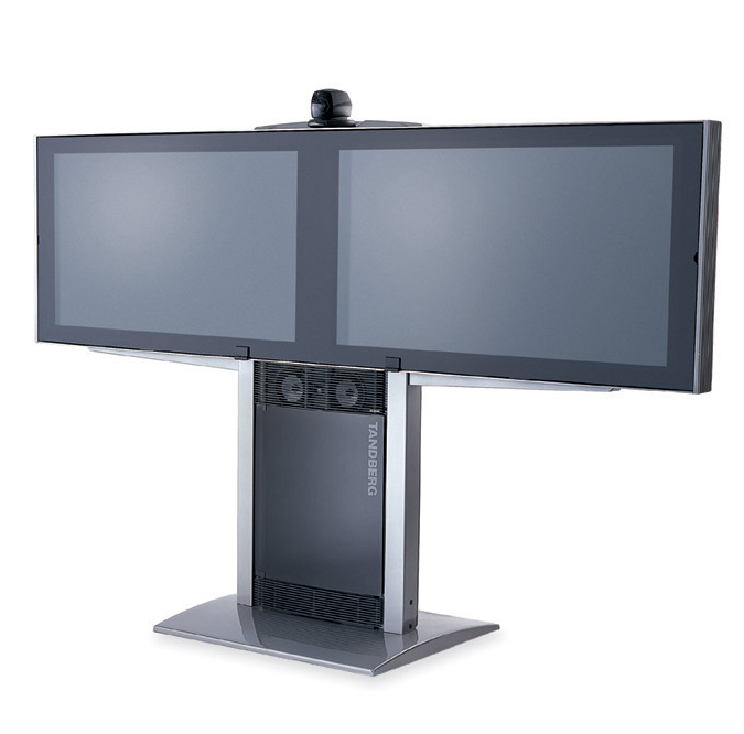The Tandberg 8000 equipment includes two 50" wide-screen plasma monitors (NTSC or PAL), Tracker, W.A.V.E. II camera, microphone, wireless remote control Natural Audio Module™ II, stand and integrated cabling. The 8000 is ideal for boardrooms and large meeting rooms.